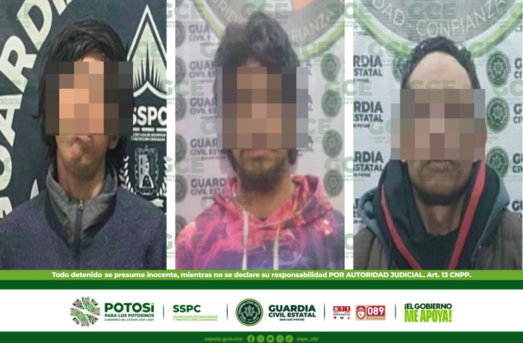 En la capital potosina, tres hombres son detenidos por guardia civil estatal tras asegurarles armas blancas