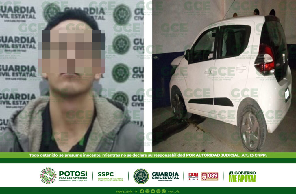 Presunto a bordo de vehículo robado es detenido por guardia civil estatal