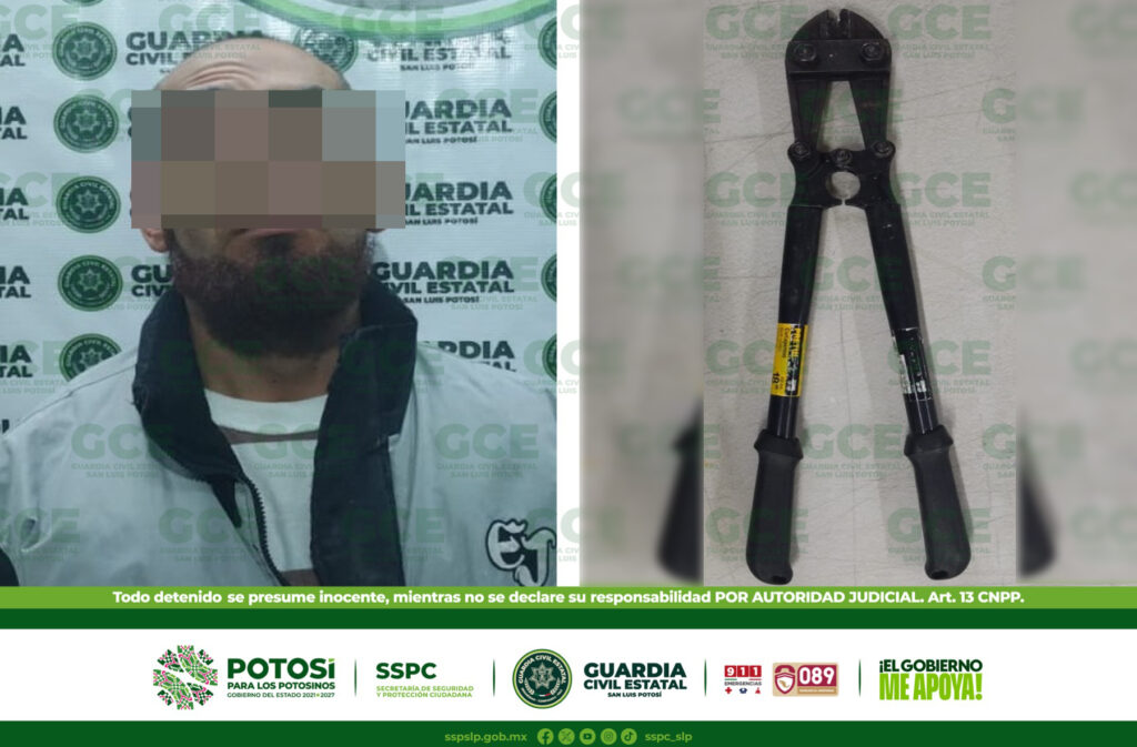 San Luis Potosí S.L.P.- Como parte de la respuesta inmediata ante llamados de auxilio de la población, un menor de 14 años fue detenido por la Guardia Civil Estatal por presunto allanamiento. En un inmueble de la colonia El Aguaje al sur de la ciudad, se procede a entablar diálogo con la parte afectada quien […]