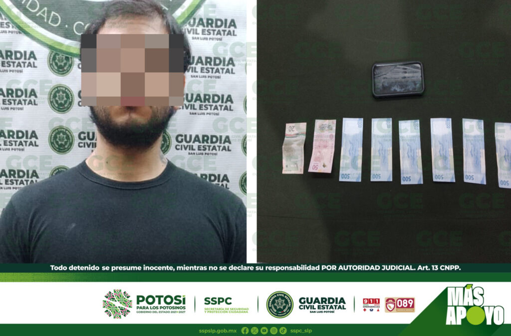 San Luis Potosí S.L.P.- En atención a un reporte de auxilio generado en Plaza San Luis, oficiales de la Guardia Civil Estatal procedieron a detener a un masculino de 21 años, señalado de causar daños en las oficinas administrativas y sustraer dinero en efectivo. Los uniformados se entrevistan con la parte afectada manifestando su deseo […]