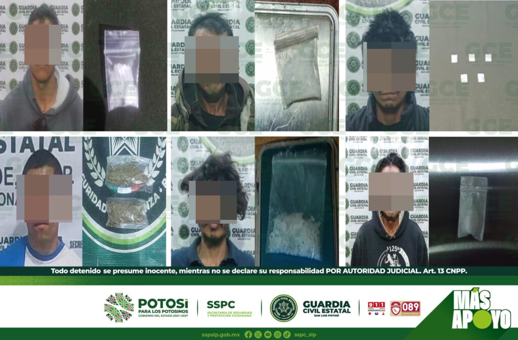 En Ciudad Valles, guardia civil estatal captura a 7 presuntos narcomenudistas