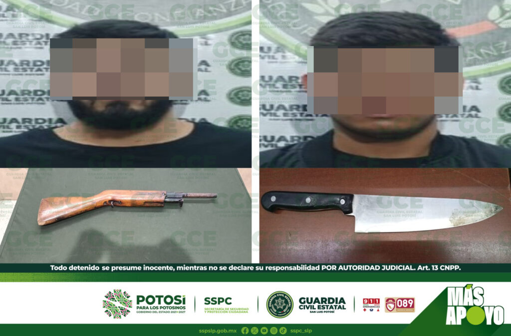 San Luis Potosí S.L.P.- Agentes de la Guardia Civil, llevaron a cabo la detención de dos masculinos a quienes se les encontraron armas prohibidas. Durante patrullajes, se detecta en Privada de la Concepción, Fraccionamiento La Virgen en Soledad, a un conductor que pretendió evadir la presencia policial, por lo que al darle alcance y mediante […]