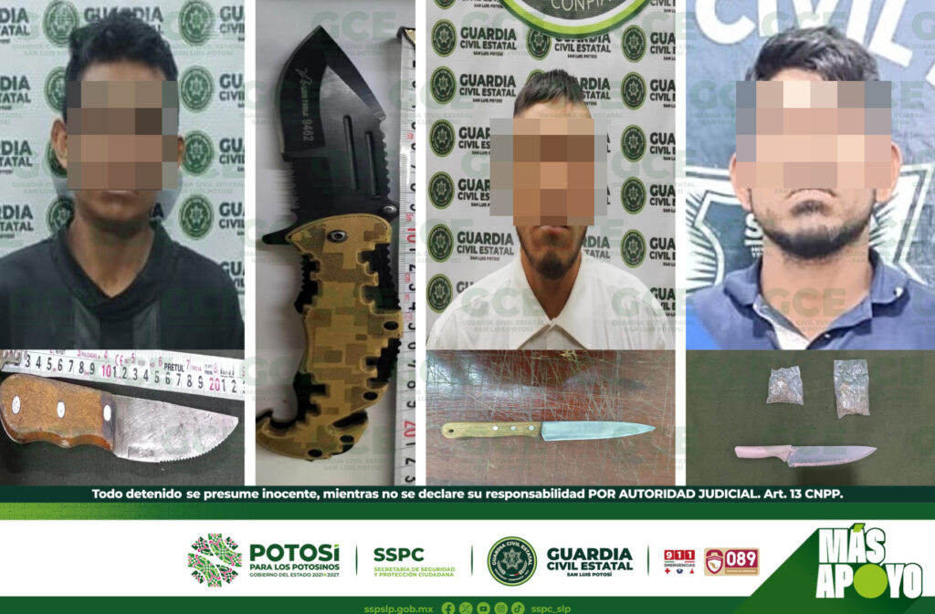 San Luis Potosí S.L.P.- Operativos de prevención y vigilancia establecidos en las cuatro regiones de la Entidad por parte de la Guardia Civil Estatal, permitieron que cuatro hombres fueran detenidos por presunta posesión de armas prohibidas. En Periférico Norte y Camino a San Juanico, colonia Don Antonio, los uniformados proceden al arresto de José de […]
