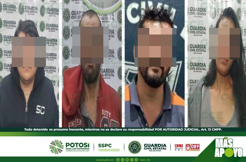 S.L.P.- En distintas acciones, efectivos de la Guardia Civil Estatal (GCE) detuvieron a cuatro personas, por el presunto delito de agresiones a miembros de su familia, quienes solicitaron del apoyo policiaco. Uno de los sucesos ocurrió en la colonia María Cecilia, Manuel “N” de 39 años de edad, fue detenido a petición de su esposa, […]