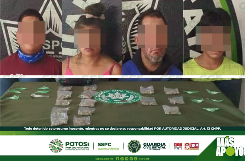 San Luis Potosí S.L.P.- A través de la atención inmediata que se brinda a reportes sobre casos de violencia familiar, agentes de la Guardia Civil Estatal (GCE); concretaron el arresto de cuatro masculinos señalados de incurrir en agresiones verbales y físicas contra sus familiares. En la colonia Azaleas en el Municipio conurbado de Soledad es […]