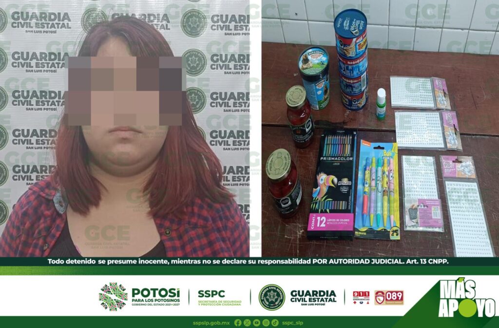 San Luis Potosí, S.L.P.- En atención inmediata a reportes de auxilio sobre robos en proceso ocurridos al interior de supermercados, agentes de la Guardia Civil Estatal (GCE), detuvieron en el Barrio de Santiago, a una mujer, señalada como la presunta responsable del hurto de varios artículos del establecimiento. Las autoridades estatales procedieron al arresto de […]