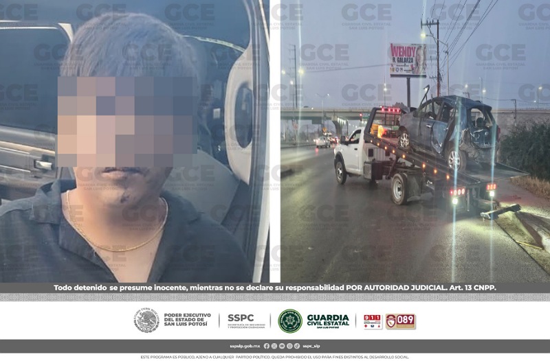 Soledad de Graciano Sánchez, S.L.P.- Derivado de un reporte atendido en la Línea de Emergencias 911, sobre un hecho de tránsito ocurrido en la colonia Santa Cruz, en donde una persona resultó lesionada, un hombre fue detenido como el presunto responsable de estos hechos.