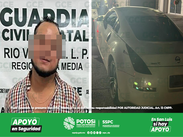 El detenido fue puesto a disposición de la Fiscalía General del Estado junto con la unidad sedán, color blanco, sin placas, en la que se desplazaba.