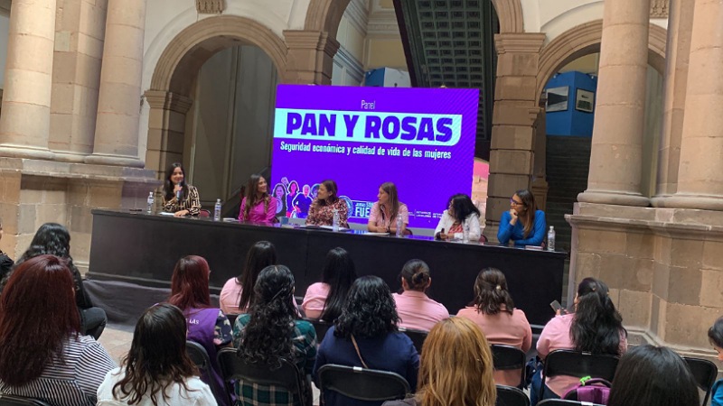 De igual manera se realizó el Panel “Pan y rosas, seguridad económica y calidad de vida de las mujeres” en el que participaron: Abril Gallegos Aviña, Directora General de la Empresa de Transportes Empresariales de San Luis (TRAEME); Lilia Anely Anguiano Rodríguez, Directora Regional de Recursos Humanos en Schweitzer Engineering Laboratories (SEL LATAM); Cintia María Bustos Pedraza, Presidenta del Comité de Women in Stem Entrepreneurship (WISTEM LATAM); Ada Luz Martínez Morales, Socia Activa de Industriales Potosinos A.C (IPAC); Roxana Eunice Olvera Rosillo, Coordinadora de Fortalecimiento Empresarial. El panel fue moderado por una regidora del Cabildo de la Capital.