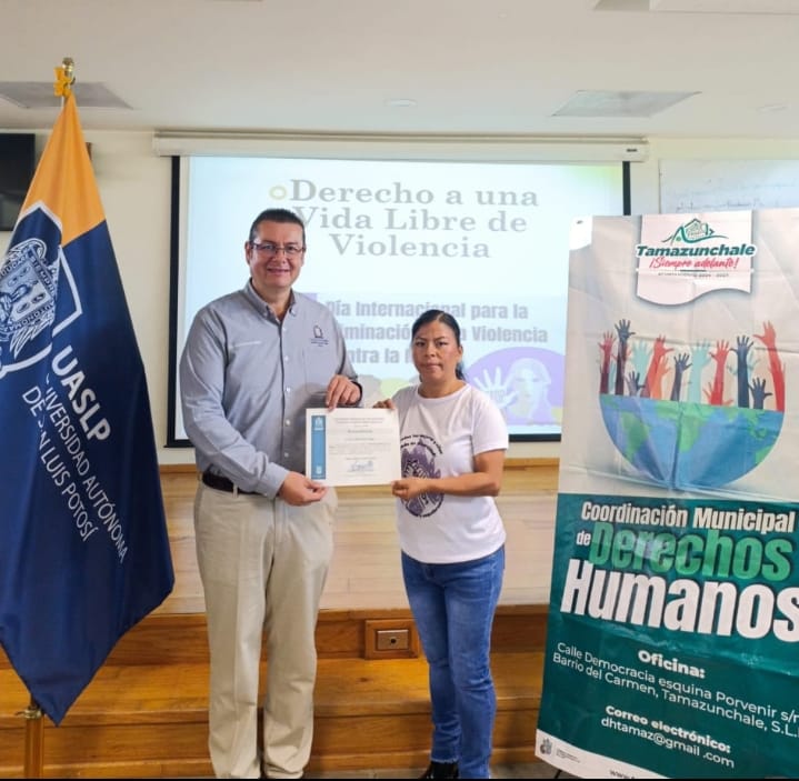 Como parte de las acciones de sensibilización impulsadas en el municipio, se impartió una plática sobre los Derechos Humanos de las Mujeres al alumnado de la UASLP, Coordinación Académica Huasteca Sur. La actividad, realizada el martes 24 de noviembre, busca fortalecer la formación de jóvenes universitarios en una cultura de respeto y prevención de la violencia.