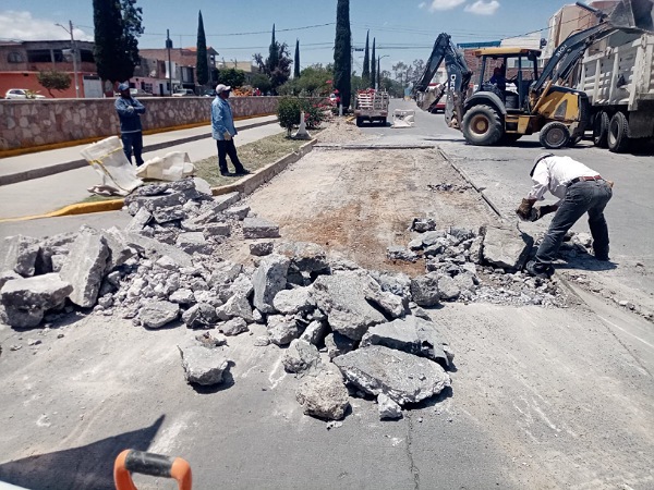 Las calles que están en proceso de atención con bacheo de material de concreto son: Fuente de Tritón, en el tramo que va de Fuente de Cristal a Fuente de la Montaña, en la colonia Balcones del Valle; de igual forma en Eje 104, entre Bosque Zafiro y Bosque Esmeralda, en la colonia Industrial San Luis; Gabriel García Hernández, en el tramo de 6 de Junio a Valle del Rocío, Wenceslao; y en la avenida Sierra Leona, de Sierra María a Montes Kelut, así como Cordillera Karakórum, entre Cordillera del Marqués a Montes Kelut, ambas de la colonia Lomas 3era. Sección.