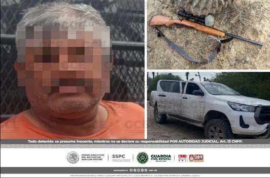 Ahí fue detenido Rogelio “N” de 52 años de edad, quien fue asegurado con un rifle calibre .270 milímetros. Por lo anterior fue puesto a disposición de la Fiscalía General de la República, lugar en donde se definirá su situación legal.