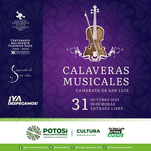 En San Luis Potosí si hay apoyo en cultura, y siguiendo esta encomienda, en el marco de la festividad “Xantolo se vive en tu ciudad” la Secretaría de Cultura de Gobierno del Estado, invita al público en general al concierto “Calaveras musicales” que la Camerata de San Luis ofrecerá en el Museo Federico Silva Escultura Contemporánea el martes 31 de octubre a las 19:00 h, con entrada libre.