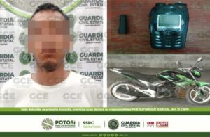 San Luis Potosí, S.L.P.- Como parte de la aplicación del Plan Integral de Seguridad, elementos de la Guardia Civil Estatal, detuvieron a un motociclista que