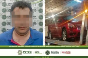 San Luis Potosí, S.L.P.- Elementos de la Guardia Civil Estatal detuvieron al conductor de un automóvil en la capital potosina luego de que fuera detectado