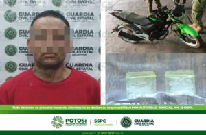 San Luis Potosí S.L.P.- Agentes de la Guardia Civil Estatal, lograron el arresto de un masculino que tripulaba una motocicleta con placa sobrepuesta y además