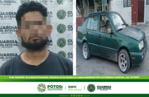 San Luis Potosí S.L.P.- Operativos de seguridad desplegados en el sector oriente de la capital potosina, permitieron la detención de un masculino que tripulaba un