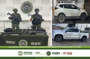 -Derivado de la reacción de la Guardia Civil Estatal, se localizaron dos vehículos reportados como robados; además de dos armas de fuego largas, cartuchos y