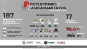 La Secretaría de Seguridad y Protección Ciudadana del Estado, informa los resultados obtenidos en el periodo comprendido del 17 al 24 de mayo con la