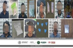 S.L.P.- En diferentes acciones operativas, oficiales de la Guardia Civil Estatal (GCE), detuvieron a 13 personas, por el probable delito de posesión de droga, inhibiendo