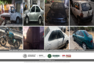 S.L.P.- Como resultado de los operativos de seguridad y de búsqueda de vehículos con reporte de robo, agentes de Guardia Civil Estatal (GCE) aseguraron ocho