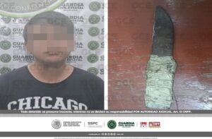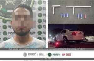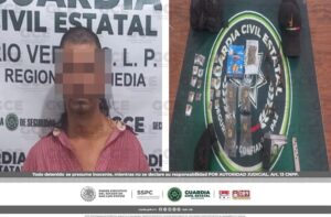 San Luis Potosí, S.L.P.- Un hombre que fue sorprendido por agentes de Guardia Civil Estatal (GCE), con un arma prohibida, fue detenido derivado de los