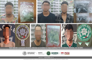 S.L.P.- Mediante los dispositivos de seguridad y vigilancia, efectuados por agentes de la Guardia Civil Estatal (GCE), se detuvo a 18 personas en diferentes acciones