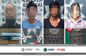 S.L.P.- Patrullajes preventivos y disuasivos efectuados por la Guardia Civil Estatal (GCE), permitieron la detención de cuatro personas, quienes presumiblemente se desplazaban con armas punzocortantes