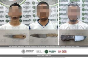 San Luis Potosí, S.L.P.- Tres personas resultaron detenidas por agentes de Guardia Civil Estatal (GCE), por el probable delito de portación de armas prohibidas, tras