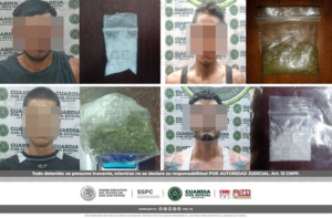 S.L.P.- Como resultado de los patrullajes preventivos y disuasivos de hechos ilícitos, agentes de Guardia Civil Estatal (GCE) detuvieron a ocho personas, por el posible