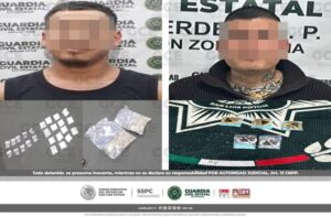 S.L.P.- Como resultado de los trabajos desdoblados en el Plan Integral de Seguridad, agentes de la Guardia Civil Estatal (GCE) detuvieron a dos presuntos vendedores