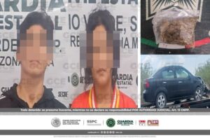 Rioverde, S.L.P.- Oficiales de la Guardia Civil Estatal (GCE) detuvieron a una pareja en el municipio de Rioverde, por probables delitos contra la seguridad de