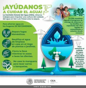 La Comisión Estatal del Agua (CEA), refuerza trabajos para impulsar una cultura del cuidado del agua en San Luis Potosí ante la sequía Para ahorrar
