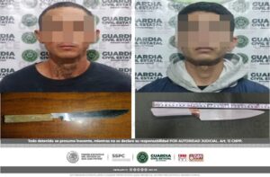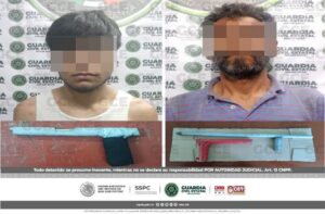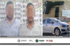 San Luis Potosí, S.L.P.- Tras los operativos de seguridad, efectuados en la capital potosina, elementos de la Guardia Civil Estatal (GCE) detuvieron a dos hombres,