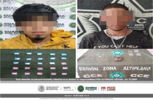 S.L.P.- En acciones contundentes contra la delincuencia, desarrolladas en las cuatro regiones del Estado, oficiales de la Guardia Civil Estatal (GCE) detuvieron a 20 personas,