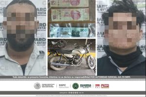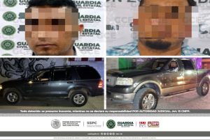 San Luis Potosí, S.L.P.- Durante los patrullajes de seguridad y vigilancia, efectuados por la Guardia Civil Estatal (GCE) dos hombres resultaron detenidos por el probable