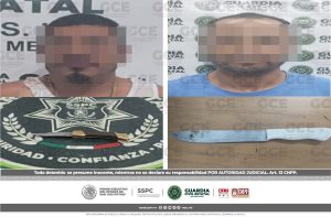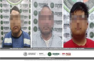 S.L.P.- Mediante las acciones preventivas y disuasivas de actos de violencia, oficiales de la Guardia Civil Estatal (GCE) detuvieron a tres hombres, por el probable