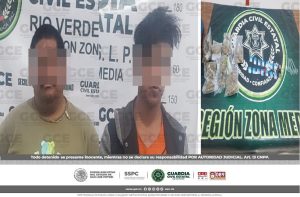 Ambos detenidos, posiblemente vinculados a hechos delictivos suscitados en el municipio de Moctezuma. S.L.P.- En el marco de las acciones de seguridad, para el combate