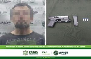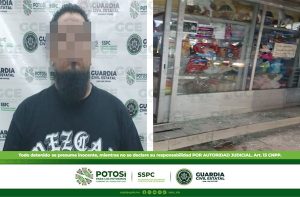 San Luis Potosí, S.L.P.- Oficiales de Guardia Civil Estatal (GCE) detuvieron a un individuo, después de que fuera sorprendido con lo que parecía ser un