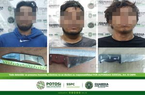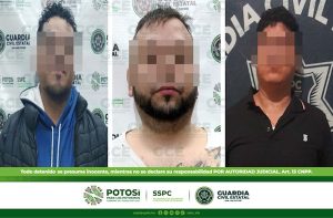 San Luis Potosí, S.L.P.- Mediante los recorridos preventivos y disuasivos, efectuados por oficiales de Guardia Civil Estatal (GCE) en la capital potosina, tres hombres fueron