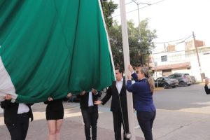 El acto cívico se llevó a cabo en la sede del Comité Directivo Estatal. En el marco del Día de la Bandera las y los