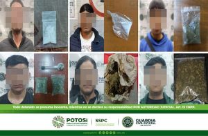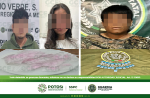 S.L.P.- Dentro de las acciones del Plan Integral de Seguridad para el firme combate al narcomenudeo, agentes de Guardia Civil Estatal capturaron a tres presuntos