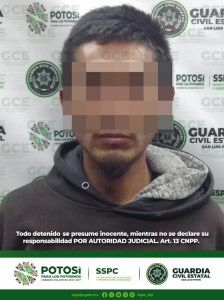 San Luis Potosí, S.L.P.- Derivado de una alerta ciudadana, atendida por elementos de Guardia Civil Estatal (GCE), un hombre resultó detenido por probables daños a
