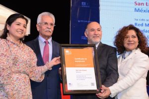 El Alcalde Enrique Galindo recibió en el Teatro de la Paz este reconocimiento a los programas del Gobierno de la Capital, debido a que impulsan
