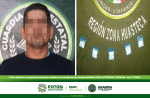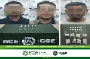 San Luis Potosí, S.L.P.- Derivado de los operativos de acción y reacción inmediata ante situaciones de riesgo, oficiales de la Guardia Civil Estatal (GCE) detuvieron