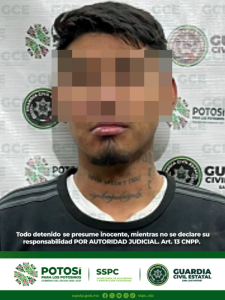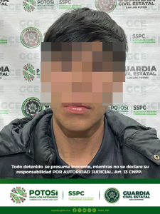 San Luis Potosí, S.L.P.- Durante los operativos de seguridad, efectuados por elementos de Guardia Civil Estatal (GCE), un hombre fue detenido por probables delitos contra