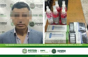 San Luis Potosí, S.L.P.- Mediante una alerta emitida por personal de un supermercado, un hombre fue detenido por elementos de Guardia Civil Estatal (GCE) por