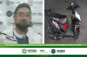 San Luis Potosí, S.L.P.- Un motociclista fue detenido por agentes de Guardia Civil Estatal (GCE) luego de ser detectado en probable manejo temerario, durante los