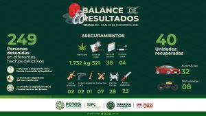-Plan Integral de Seguridad 2024 permite la detención de 249 personas por diversos ilícitos -Se destaca la captura de un presunto criminal que atentó contra