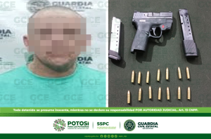 San Luis Potosí, S.L.P.- Un dispositivo de seguridad desarrollado en la capital potosina, resultó en la detención de un hombre, luego de que pretendiera evadir
